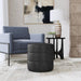 Layer in an extra surface or added seating by way of a round ottoman with dramatic channeling for great texture. Park one by an armchair or use for extra seating. Perfect accent piece for any room in your home. No Assembly Required.