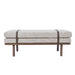 Elevate your space with this modern upholstered bench, styled in a soft gray fabric for a clean, sophisticated look. Faux leather strap accents add a sleek design detail, while the mid-tone walnut wood–finished legs bring warmth and natural texture to any room. Perfect for entryways, bedrooms, or living areas, this versatile bench offers both seating and style. A beautiful blend of comfort and contemporary design.