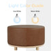 Elevate your space with this large, round ottoman, beautifully upholstered in smooth faux leather and grounded by a light wood base and legs. Designed with a minimalist silhouette, it brings a soft, contemporary touch to any room while offering versatile use as extra seating, a footrest, or a stylish accent piece. Subtle, sleek, and thoughtfully crafted, this ottoman blends seamlessly into modern, Scandinavian, or minimalist interiors.