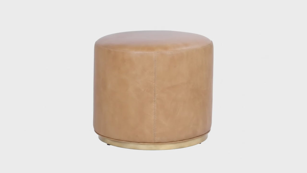 Bring subtle style and modern simplicity to your space with this compact round ottoman, upholstered in smooth faux leather and finished with a sleek light-wood apron frame at the base. The low-profile, legless design creates a clean, minimalist silhouette while the warm wood detail adds natural texture and balance. Perfect as a small accent seat, footrest, or stylish décor piece. Durable, easy to maintain.